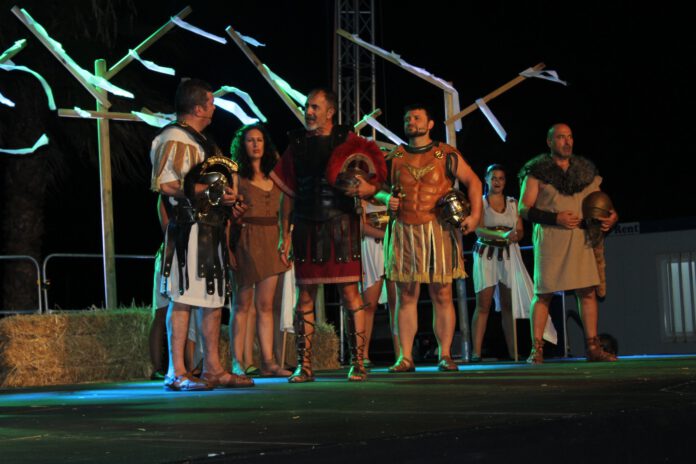 La clave de Thiar para la victoria de Pompeyo en Hispania” fue viajar unos 2.050 años a pie de la playa en las Mil Palmeras, contemplando un escenario repleto de romanos, que en su quinta edición les recordaba su pasado ligado a un testigo patrimonial, que nos muestra la relación de Pilar de la Horadada con la “mansio de Thiar”, mediante una adaptación de la guerra de Pompeyo en Hispania.