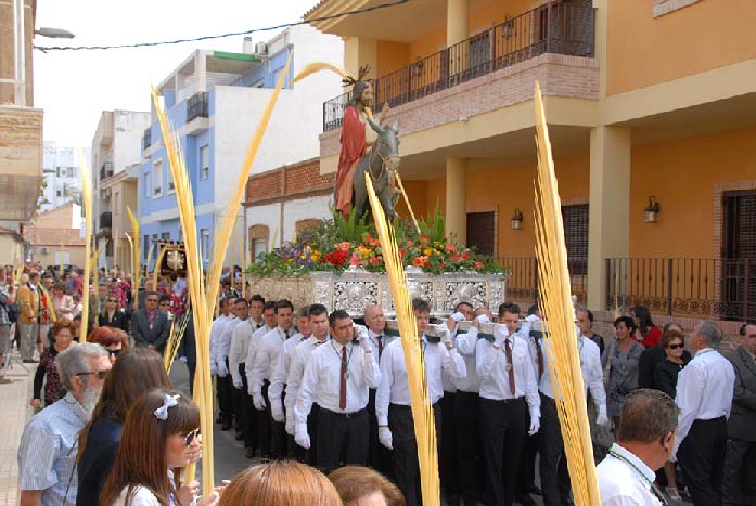 Para los más cofrades, el Domingo de Ramos es uno de los más tradicionales en las localidades murcianas por sus procesiones de las palmas y olivos. Tras la bendición de las palmas y las ramas de olivo frente a la iglesia San Pedro Apóstol, en la plaza de la Constitución, los cientos de fieles se desplazan hasta la iglesia de la Santísima Trinidad, donde se celebra la misa de Las Palmas, una eucaristía donde se lee completa La Pasión.