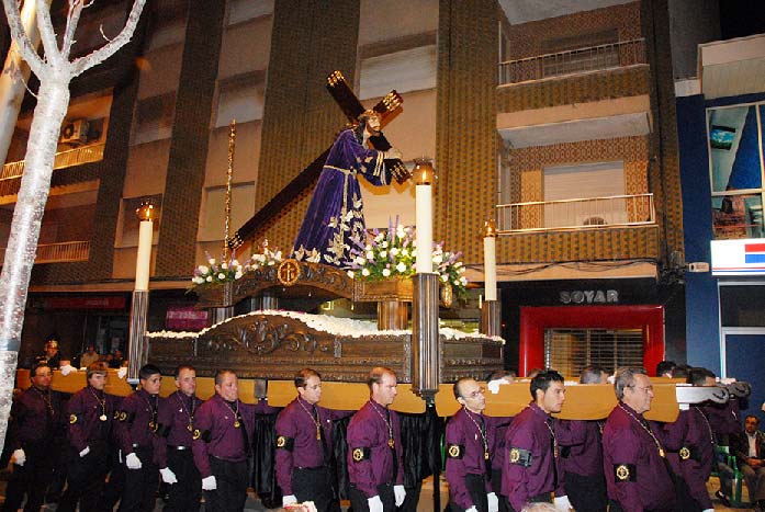Santiago de la Ribera sacará por segunda vez a la Soledad del Mar Menor en procesión. Será a las 21:00 cuando se inicie este cortejo encabezado por la cruz parroquial y el tercio de penitentes, el cual presenta achotes nuevos.