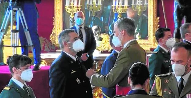 El militar originario de San Pedro del Pinatar David Grau, de 41 años, sargento primero de la armada destinado en el Cuartel General de Madrid recibió una de las condecoraciones entregadas con motivo de la celebración de la Pascua Militar. El Rey Felipe VI le entregó la Cruz del Mérito Naval tras ser propuesto por sus superiores en el reconocimiento a su buen hacer en el trabajo y competencia. Un reconocimiento por que el que recibió muchas felicitaciones de sus orgullosos paisanos.