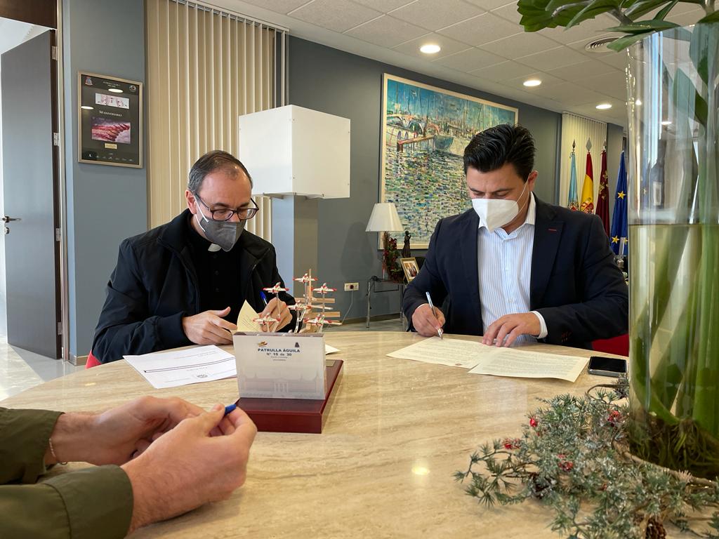 El alcalde de San Javier José Miguel Luengo y el párroco de San Javier, Juan Prieto han firmado la un convenio de colaboración a través del cual el Ayuntamiento aportará a la Iglesia Católica, a través de la Parroquia de San Francisco Javier, para el mantenimiento del patrimonio cultural del municipio de San Javier, a través de la ayuda en la conservación de la Ermita de San Isidro de Pozo Aledo con un total de 25.000 euros.