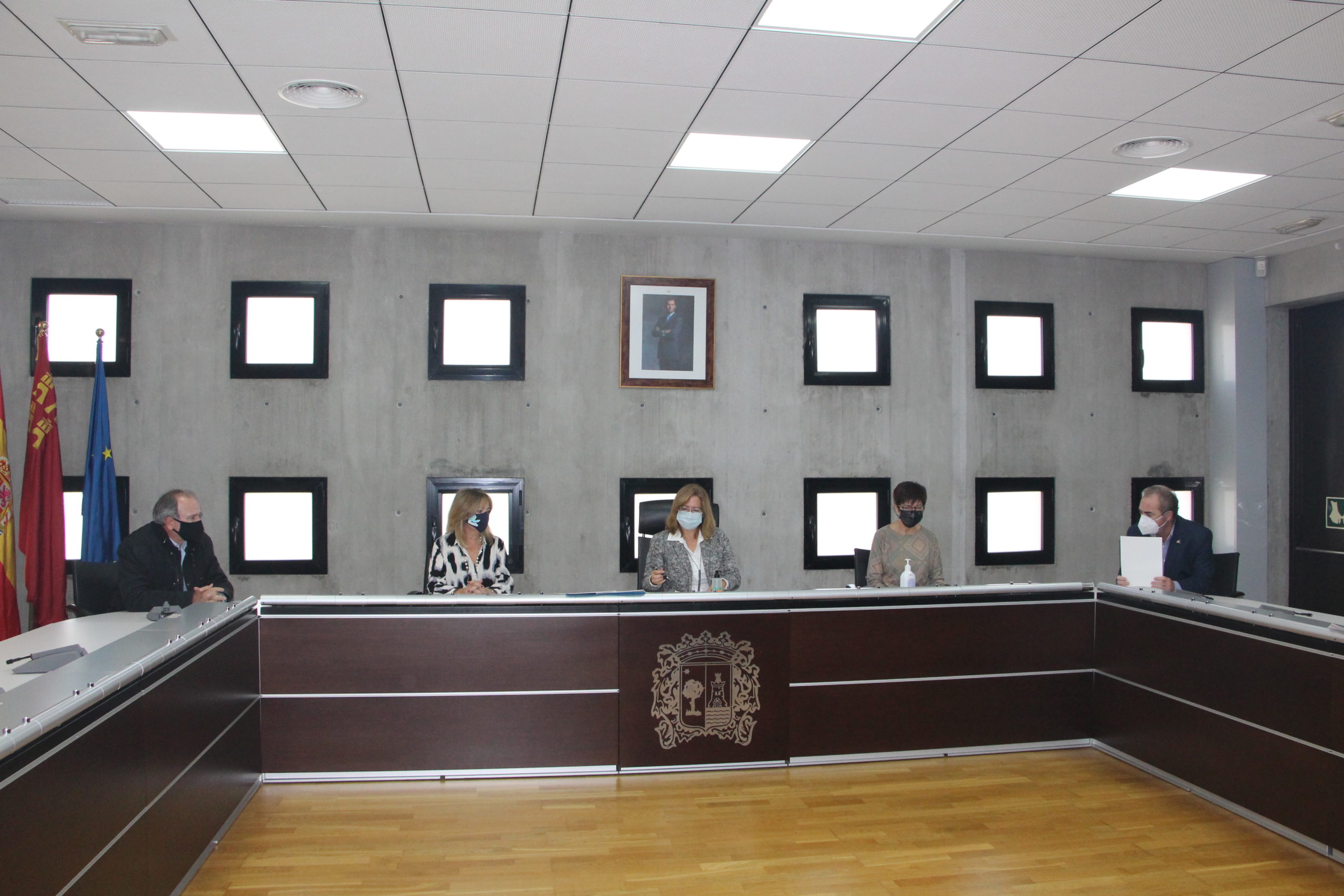 La alcaldesa de San Pedro del Pinatar, Visitación Martínez, y los representantes de las papelerías y librerías de la localidad han firmado esta mañana un convenio de cooperación educativa para el curso 2020-2021.