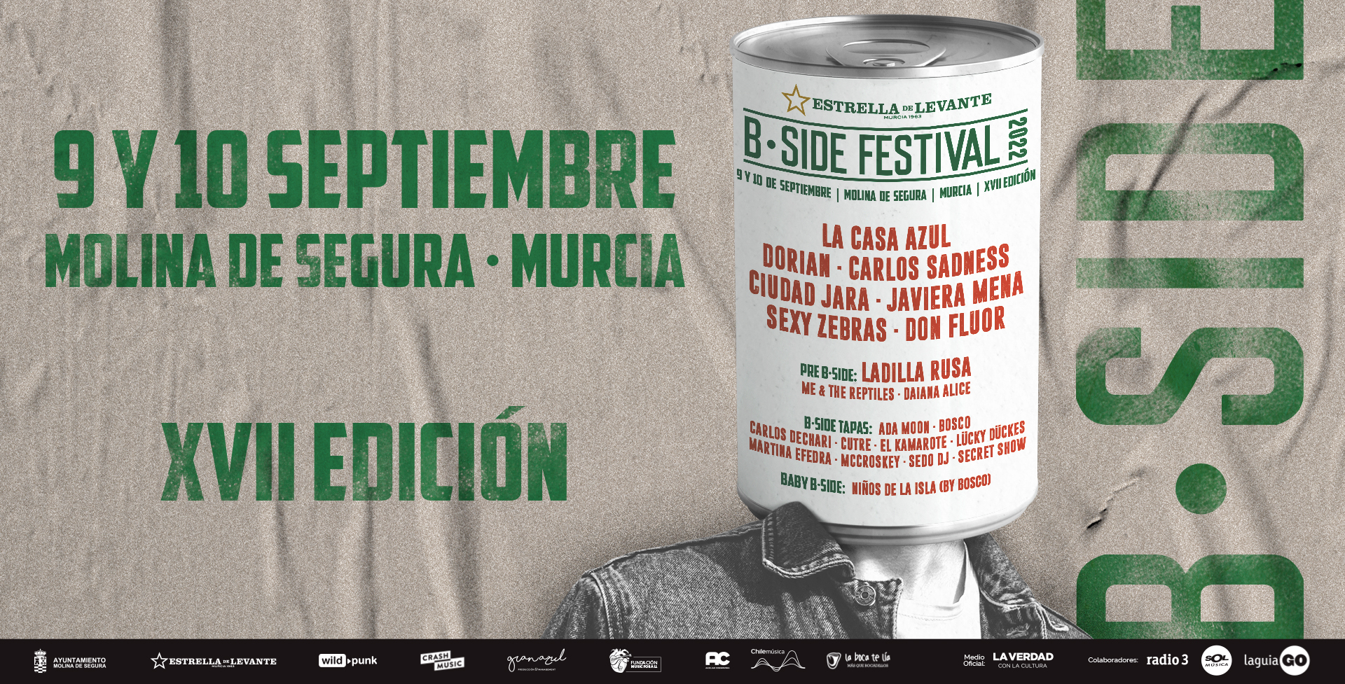Para su 17ª edición se ha preparado un gustoso cartel precedido por su habitual Fiesta de bienvenida (Pre B-SIDE) que será el viernes 9 de septiembre, gratuita y con las actuaciones de Ladilla Rusa, Daina Alice y Me & The Reptiles. El sábado 10 está reservado para vivir los mejores conciertos como las de la banda de pop indie electrónico DORIAN embarcados en su gira Ritual. También estará en el escenario uno de nuestros artisstas nacionales con más proyección en Latinoamérica y con más de dos millones de escuchas mensuales Carlos Sadness, el bubblegum de La Casa Azul, el power rock del trío más gamberro Sexy Zebras, el electro-pop de la chilena Javiera Mena, el particular cinema de Ciudad Jara y la sesión siempre especial de Don Fluor.