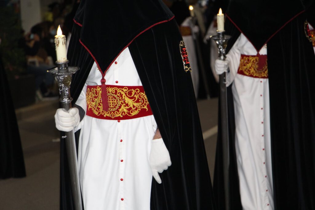 Esta procesión, donde las marchas procesionales guían a los tercios de nazarenos, destaca por su solemnidad y las diversas manifestaciones de la oración y la fe.