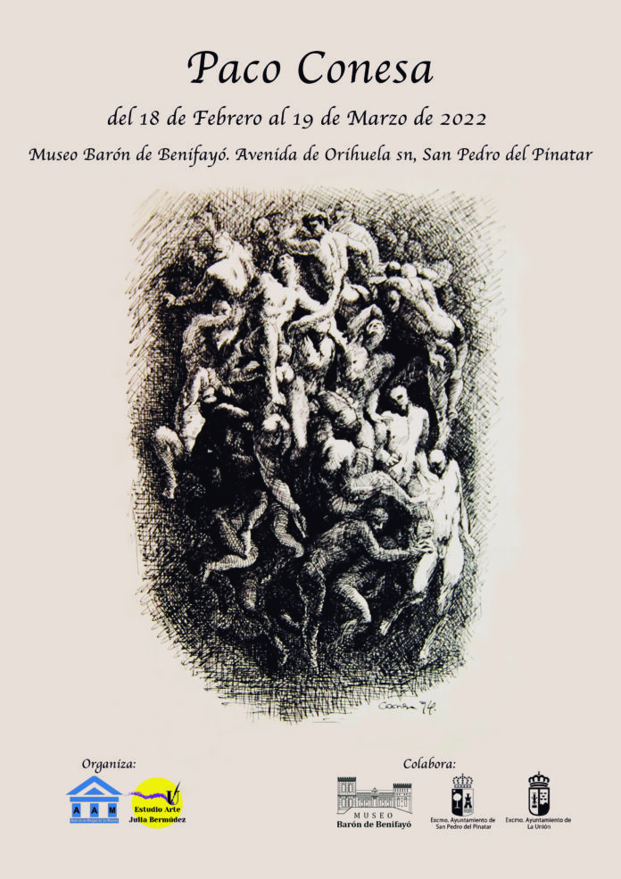 La Asociación de Amigos de los Museos ha organizado junto al Estudio de Arte Julia Bermúdez una muestra sobre la obra del polifacético artista unionense Paco Conesa. El que fuera escenógrafo, imaginero, pintor o miniaturista volverá a ver expuestas sus creaciones en el incomparable marco del Museo Barón de Benifayó (San Pedro del Pinatar).