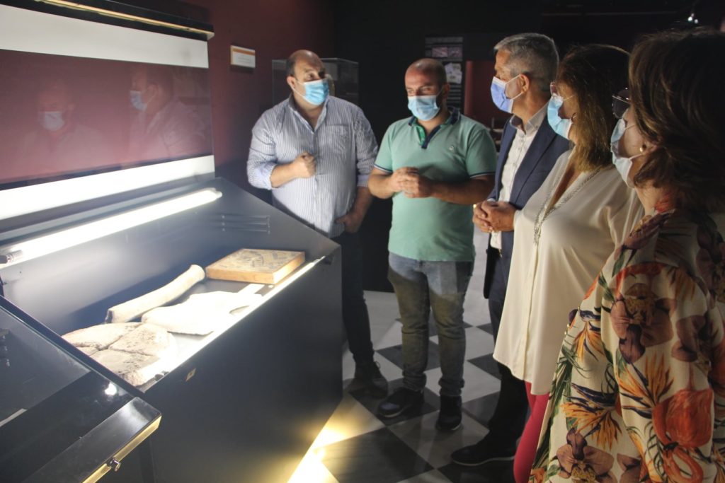 Marcos David Gracia, director del Museo Barón de Benifayó junto a Darío Quesada, asesor de cultura del ayuntamiento de El Pilar de la Horadada contemplan la nueva ubicación de las piezas cedidas al museo murciano.