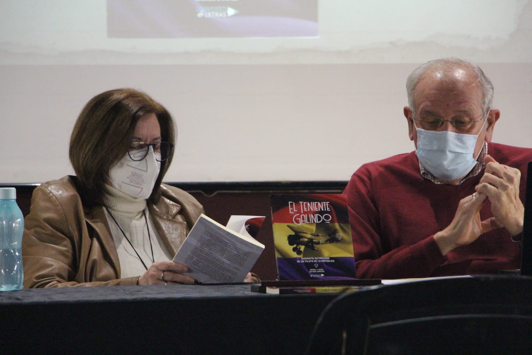 Jesús relató varios pasajes y anécdotas de este libro construido en primera persona y dedicado a su padre Miguel Galindo Saura, el teniente Galindo, un piloto de caza de las Fuerzas Aéreas de la república española.