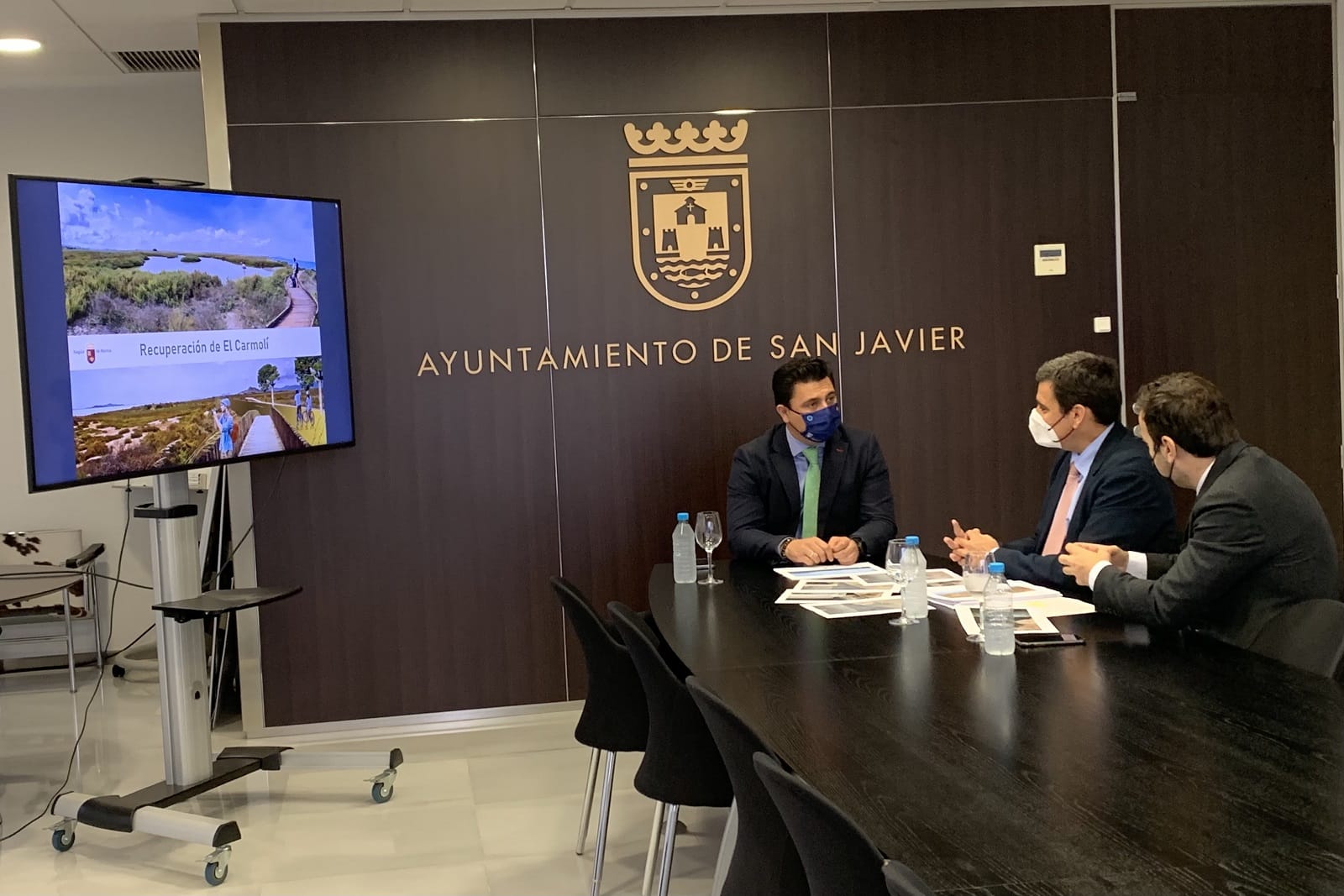 El consejero de Fomento e Infraestructuras, José Ramón Díez de Revenga se ha reunido con el alcalde de San Javier, José Miguel Luengo, en el Ayuntamiento de la la localidad para abordar la elaboración del máster plan sobre el proyecto para la renaturalización del Carmolí, presentado por el gobierno regional. El consejero explicó que la reunión se enmarca en una ronde de contactos con el resto de ayuntamiento del Mar Menor y colectivos sociales previas a la redacción del máster plan que recogerá las actuaciones a realizar en un plan que ¨pretende sacar al tráfico jurídico 3,1 millones de metros cuadrados con el fin de garantizar el uso público, y su renaturalización mediante la potenciación de sus valores ambientales¨.