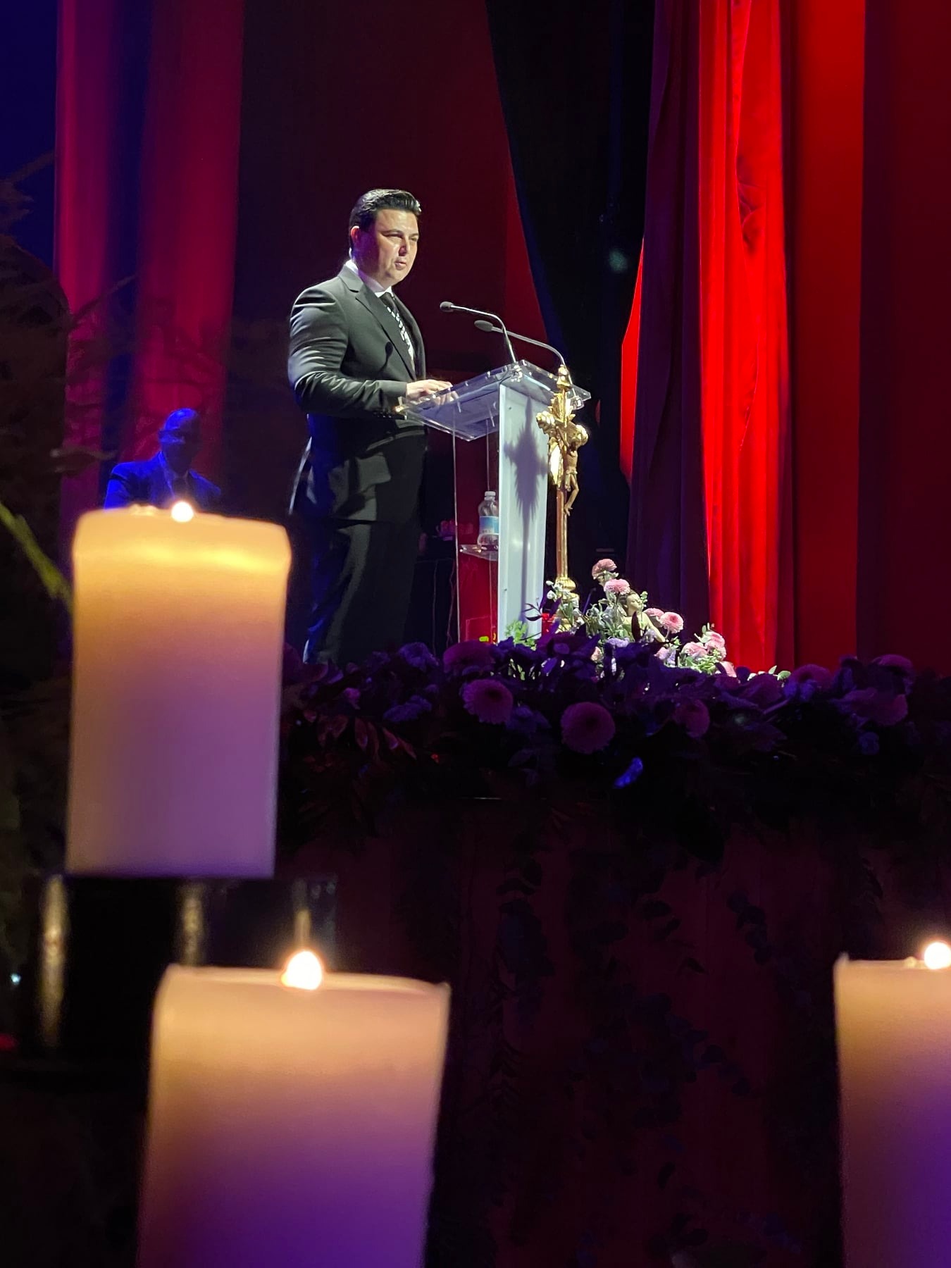 El recuerdo, sin apenas documentos históricos, de la imagen de Nuestra Señora de los Dolores, de Francisco Salzillo, o de la Cofradía del Santísimo Cristo de las Ánimas desfilando en la noche del Viernes Santo, tiene su relevo en la actualidad en “Nuestra Soledad que nos regala un nuevo comienzo, el inicio de algo que no cesa en la cruz, sino en la esperanza de la resurrección”, afirmó el alcalde de San Javier, que comenzó agradeciendo a la Cofradía de la Santísima Soledad del Mar Menor, la invitación a pregonar nuestra “renacida Semana Santa”. La música en directo, con la pianista Balbina Serna, la soprano Carmen Villalba y las saetas de Curro Piñana, imprimieron carácter a un pregón en el que no faltaron los recuerdos de las vivencias ligadas a la Semana Santa como los “Domingos de Ramos en familia” o los “célebres caramelos de Semana Santa de La Peladilla y sus célebres versos” que escribía su propio abuelo, Miguel Gallego, cronista oficial de San Javier.