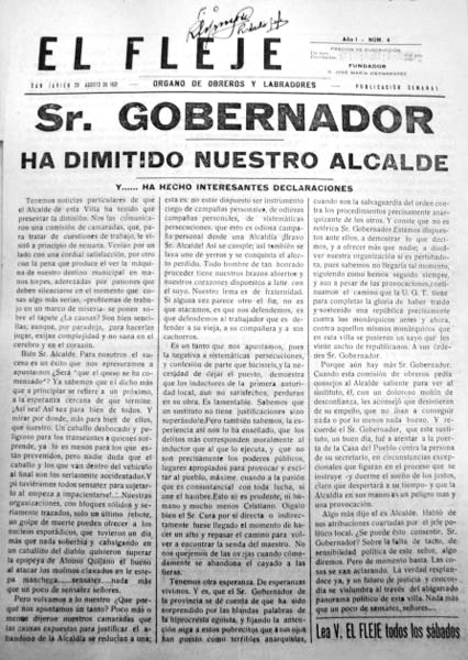 Por otra parte, El Fleje era un semanario que se denominaba «órgano de obreros y labradores». En su primer número decía que su propósito era “la unión de todos los trabajadores, obreros y labradores”. Cumplió su cometido, pues entre todos sus artículos destaca la necesidad de mejorar las condiciones laborales de los salineros de San Pedro del Pinatar. Nunca reconoció su filiación al socialismo, aunque sí mostró en varias ocasiones su simpatía por este partido político. El semanario estuvo dirigido por José María Hernansáez, quien unos meses antes había sido director del periódico La Cosecha de Cartagena.
