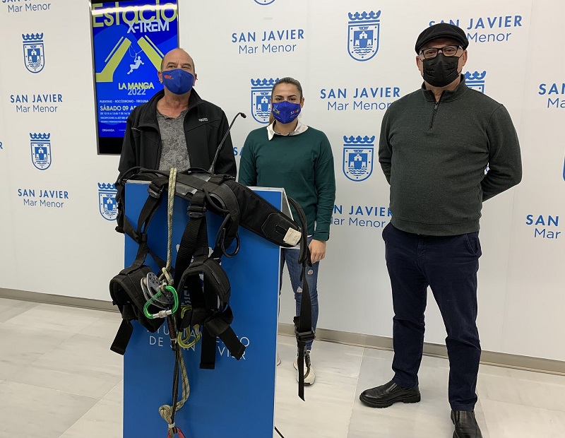 La concejala de Juventud, Isabel Madrid acompañada por el alcalde pedáneo de La Manga del Mar Menor, José Guerreo y Curro López, de Siroco Aventuras, la empresa que desarrolla el evento, presentaron hoy en el Ayuntamiento de San Javier, la jornada que se ha convertido en un clásico del calendario en La Manga y que tiene como objetivo “dinamizar la zona y poner en valor infraestructuras tan importantes como el puente del Estacio”, señaló Isabel Madrid.