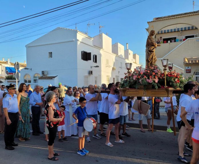 Otro éxito de participación fueron las actuaciones musicales, destacando la realizada por el grupo Los Happys o De Bis a Bis dúo. La fiesta se traslada la próxima semana hasta la Torre de la Horadada, donde se rendirán honores a Nuestra Señora de la Asunción, patrona de la pedanía costera