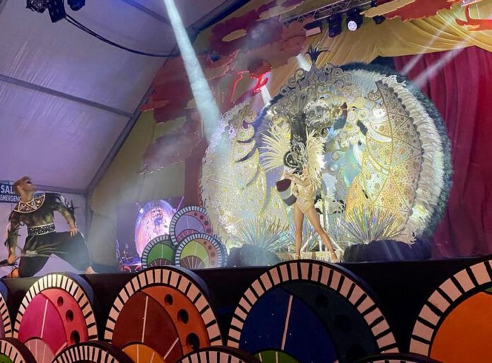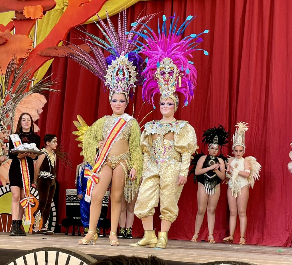 La joven Nerea Vega, musa de la comparsa Yembé, que presentó su propuesta acompañada por el muso David López, se hizo con el título de Reina del Carnaval de Santiago de la Ribera 2022, en la gala celebrada el pasado sábado en la carpa de Carnaval de la explanada Barnuevo de la localidad