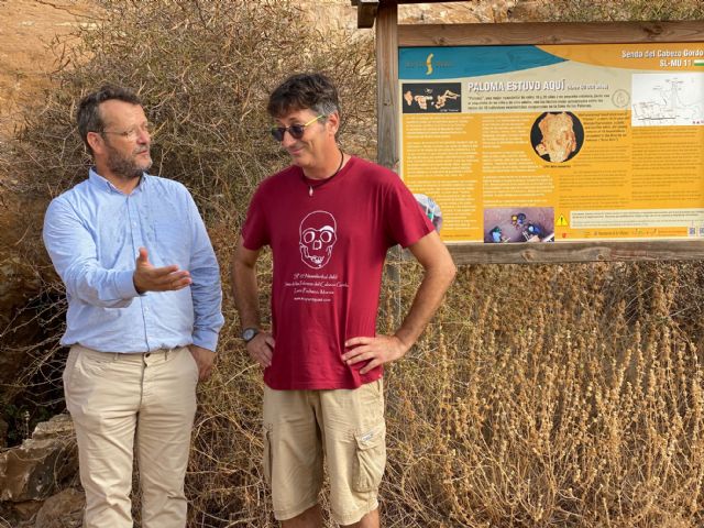 El concejal de Cultura, Raúl Lledó acompañado por el arqueólogo Mariano López, coordinador científico de las excavaciones del yacimiento de la Sima de las Palomas, ha presentado hoy 10 de agosto, en el Cabezo Gordo, tras una visita a la Sima de las Palomas, los nuevos hallazgos arqueológicos resultados durante el desarrollo de la 29ª Campaña de Excavaciones Oficiales de la Escuela de Campo “Sima de las Palomas del Cabezo Gordo” de la Prehistoria y Paleontropología del Cuaternario de la Región de Murcia, desarrolladas desde el pasado 22 de julio, hasta el 12 de agosto.