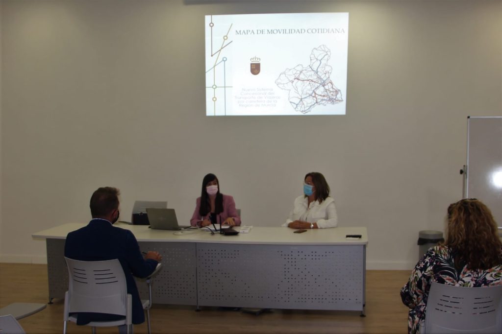 Marina Munuera presentó las novedades de esta concesión, incluida en el nuevo sistema de transportes interurbano que prepara el Ejecutivo Regional, con el que quiere, a través de un modelo ecoeficaz, accesible y conectado, ¨sacar coches de la carretera para favorecer una movilidad regional sostenible¨.