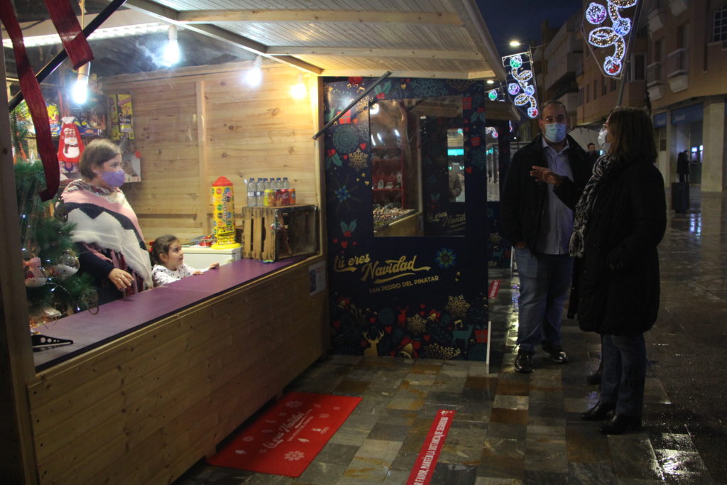 Esta tarde, la alcaldesa de San Pedro del Pinatar, Visitación Martínez, acompañada por el concejal de Festejos, Javier Castejón, han visitado el Mercado Navideño y el Belén Municipal instalados en la Plaza de la Constitución.